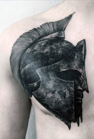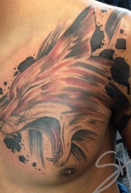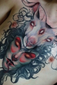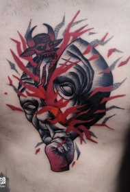 胸部超现实主义彩色胸魔鬼头像纹身图案