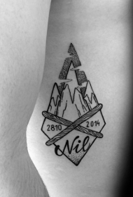 小小的点刺风格古箭头字母和数字纹身图案