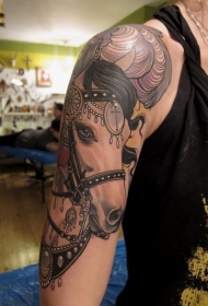 手臂华丽的马头珠宝纹身图案
