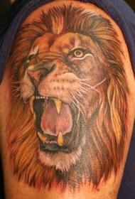 大臂咆哮的狮子头彩色纹身图案