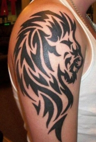 手臂上黑色的部落狮子头纹身图案