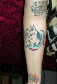 手臂上的马蹄铁和马头纹身图案