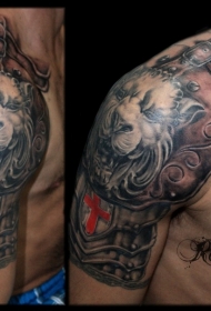 中世纪风格的彩色狮子头盔甲肩部纹身图案