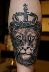 手臂上的狮子头皇冠纹身图案