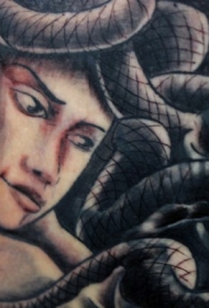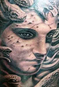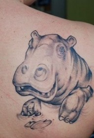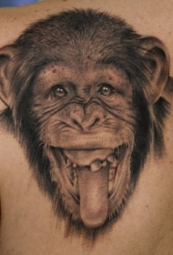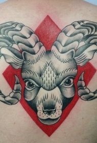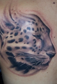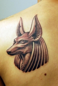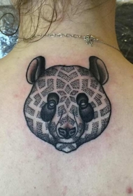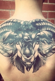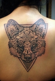 背部不寻常的黑色猫头半真实半骷髅纹身图案