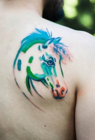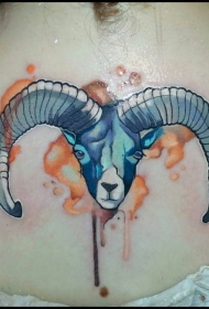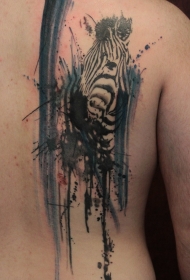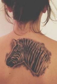 背部有趣的设计彩色斑马头像和太阳纹身图案