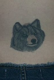 腰部一只狼头像黑灰纹身图案