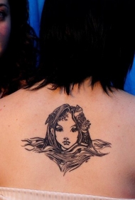 背部美人鱼的头像纹身图案