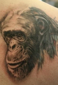 背部黑灰风格黑猩猩头部纹身图案