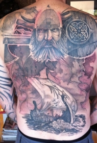 背部海盗船和武士纹身图案