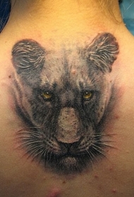 背部写实的母狮子头像纹身图案