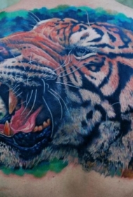 背部精彩的大老虎头像纹身图案
