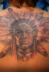 背部有羽毛的印度武士纹身图案