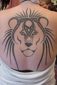背部黑色线条部落狮子头纹身图案