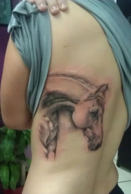 背部黑灰色的马头纹身图案