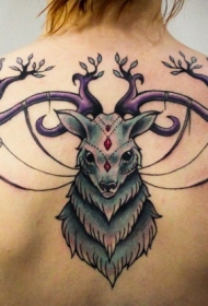 背上的彩色鹿头纹身图案