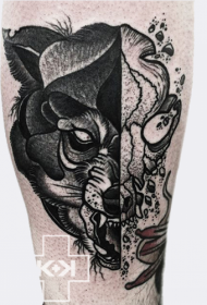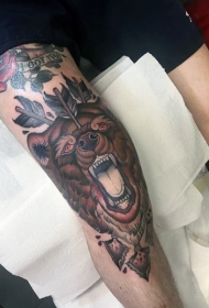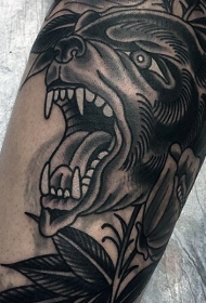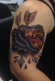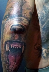 手臂黑色令人毛骨悚然的僵尸熊头纹身图案