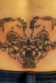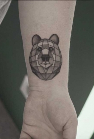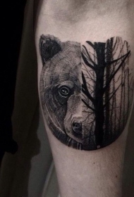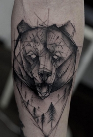 小臂素描风格黑色线条熊头部与森林纹身图案