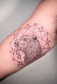 大臂素描风格黑色线条狮子头饰品纹身图案