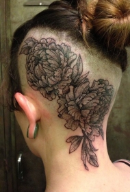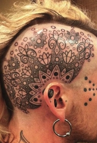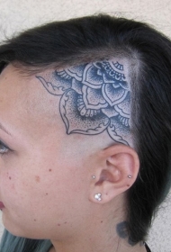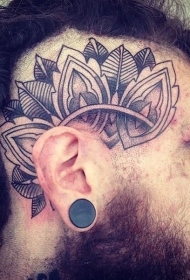头部黑色点刺大花朵纹身图案
