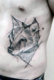 侧肋雕刻风格黑色狼头纹身图案