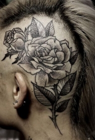 头部雕刻风格黑色玫瑰纹身图案