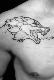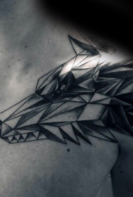 肩部几何风格狼头黑白纹身图案