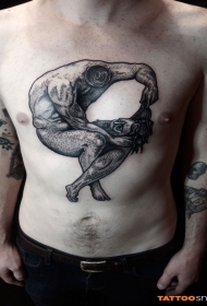胸部点刺风格黑色无头人像纹身图案