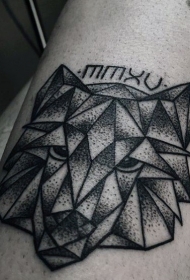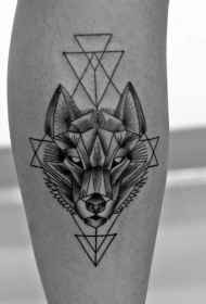 小腿经典的黑色狼头几何饰品纹身图案