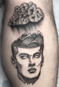 小腿超现实主义风格黑色头脑风暴纹身图案