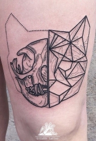 大腿几何风格黑色猫头纹身图案