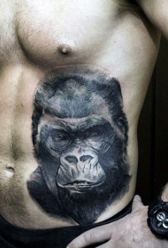 侧肋雕刻风格黑色大猩猩头像纹身图案
