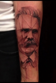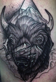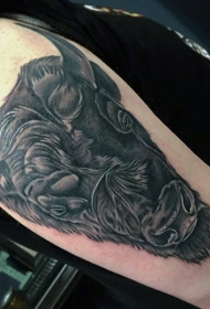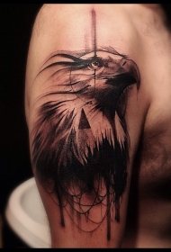 大臂雕刻风格黑色好看的鹰头纹身图案