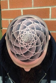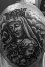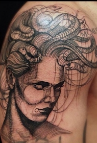 大臂雕刻风格黑色的美杜莎头像纹身图案