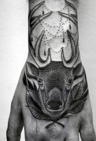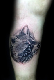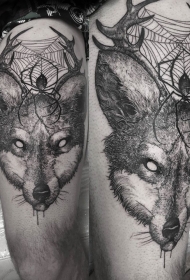 大腿雕刻风格黑色蜘蛛网和狐狸头纹身图案