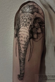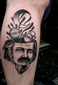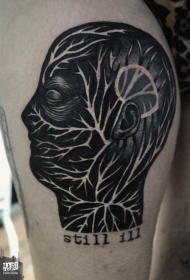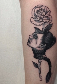 超现实主义风格的黑色女人头和玫瑰花纹身图案