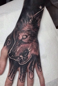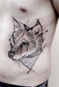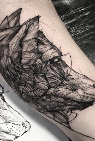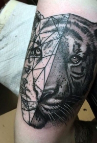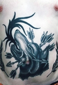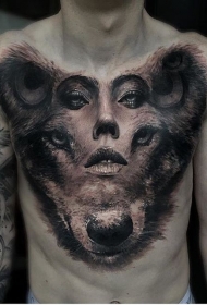 胸部令人难以置信的黑色女人脸与熊头结合纹身图案
