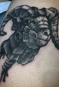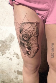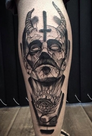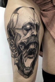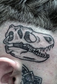 头部黑色点刺滑稽的恐龙头骨纹身图案