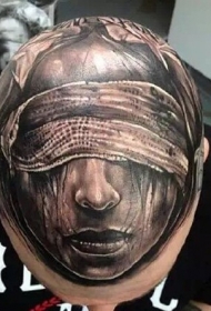 黑灰风格令人毛骨悚然的失明女子肖像纹身图案
