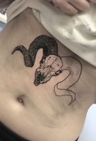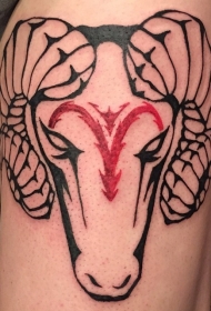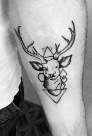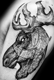 手臂雕刻风格黑色的麋鹿头纹身图案