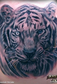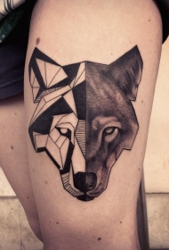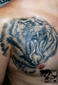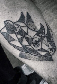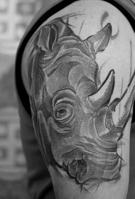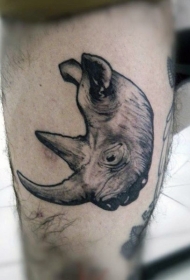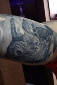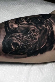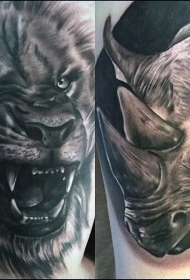 写实的黑白犀牛头部结合咆哮狮子纹身图案