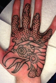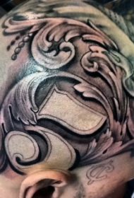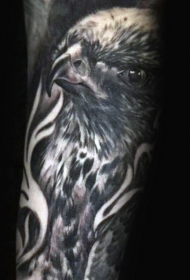 肩部罕见的逼真黑灰骷髅与鹰头纹身图案