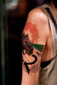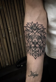 手臂现代风格的彩色数学结合黑色狮子头纹身图案