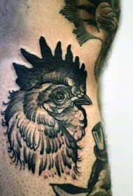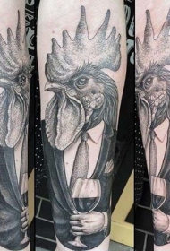 滑稽的黑灰绅士公鸡和酒杯纹身图案