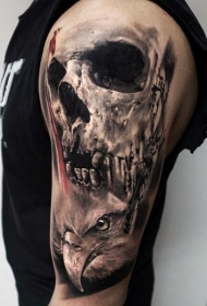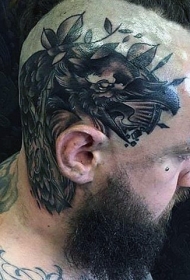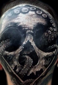 头部大胆个性的骷髅章鱼黑色纹身图案