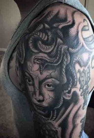 大臂令人毛骨悚然的黑色美杜莎纹身图案