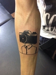 男性右手臂上黑色相机头和人身纹身图片