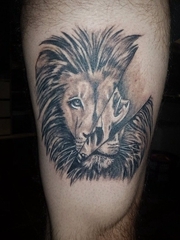 大腿上霸气的狮子头纹身图片
