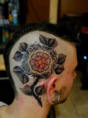 欧美男性的头部花卉图腾纹身