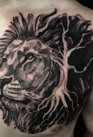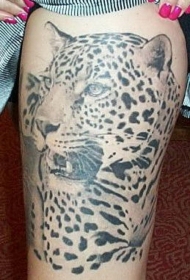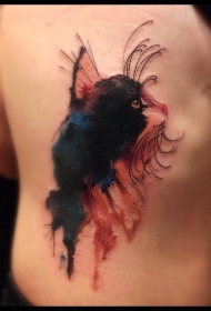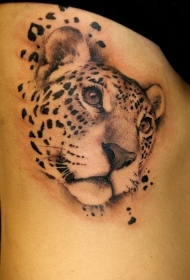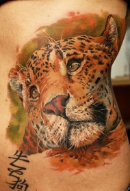 侧肋写实彩绘猎豹头部与字符纹身图案